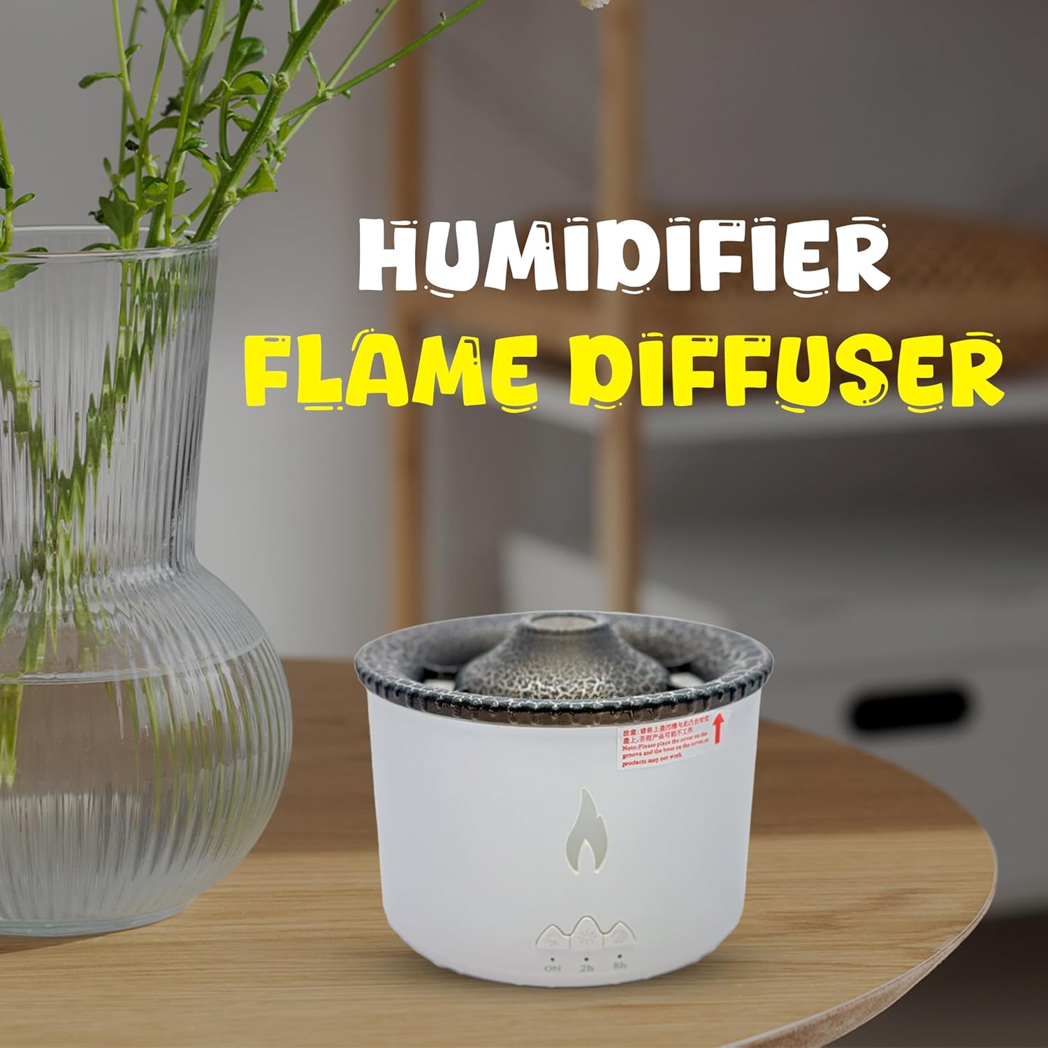 BeaconOverseas Volcano Flame Diffuser Humidifier Room Portable Room Air Purifier (White)