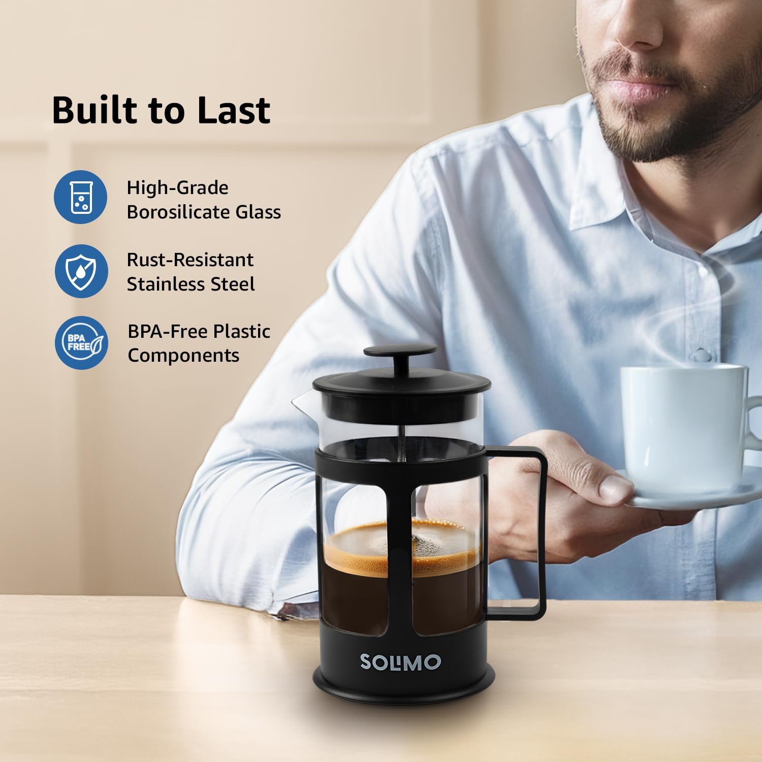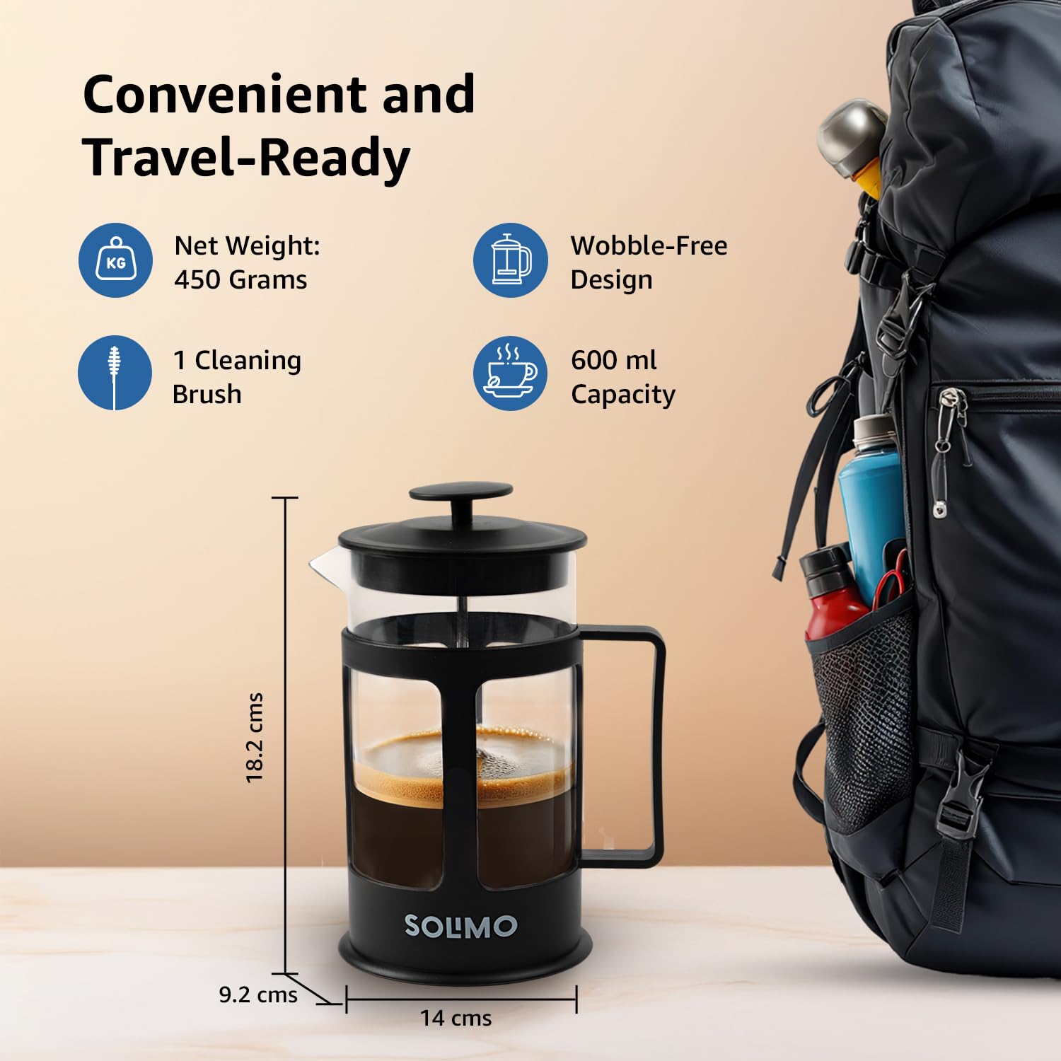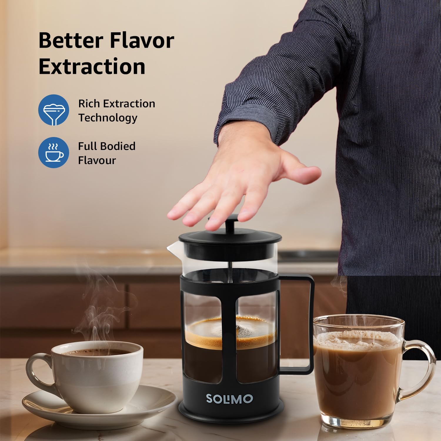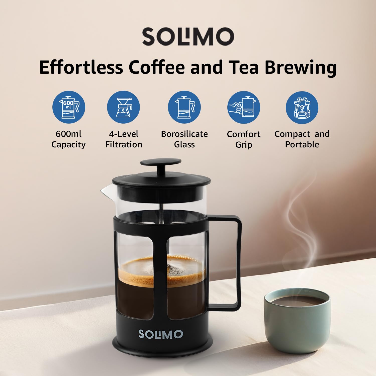 Amazon Brand – Solimo French Press Coffee and Tea Maker | 600ml