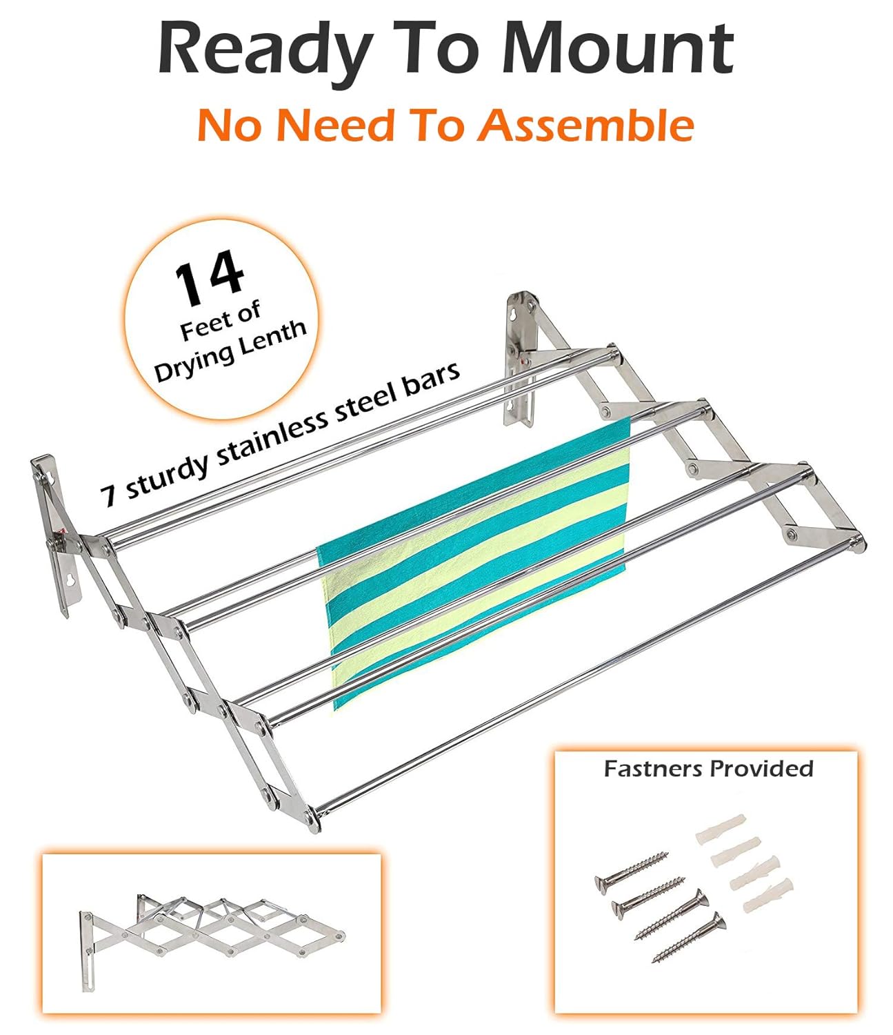 ☑️ EASY INSTALLATION: Installing this cloth drying stand is a piece of cake. It features a unique mounting style with complete hardware that’s quicker and easier to set up. Dimensions: 24 in X 22 in X 7 in (opened), 24 in X 4 in X 7 in (closed).