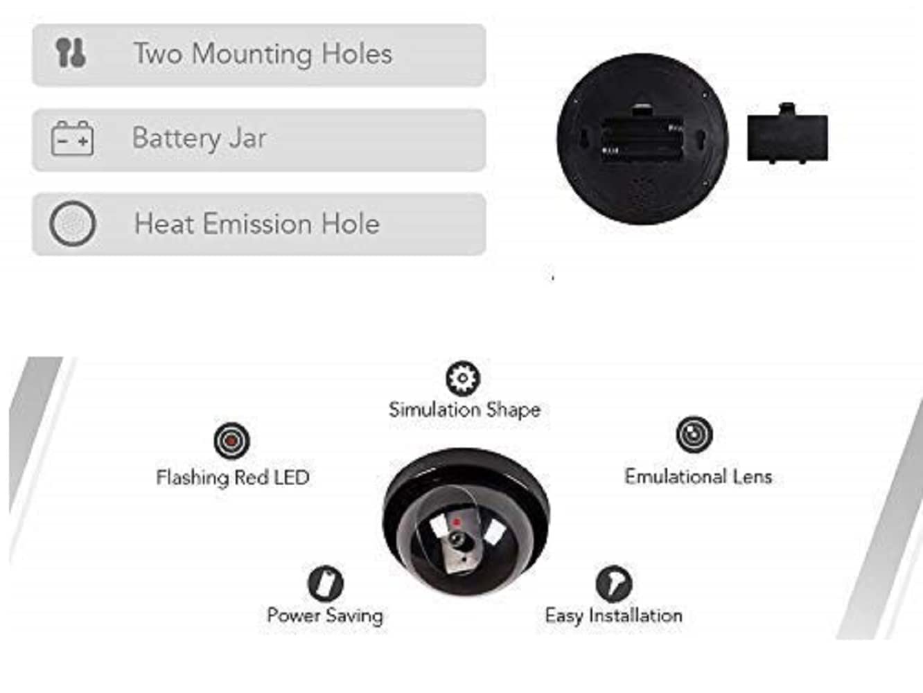 • 𖠽⭢ You can detect robbery, theft, and vandalism without the high cost of a real security camera. When placed in your home or business, even the most sophisticated criminals will think the premises are guarded by a high-tech surveillance system and go in search of an easier target. In fact, this is an actual dome surveillance camera that has been modified into a “Dummy” or fake security camera.