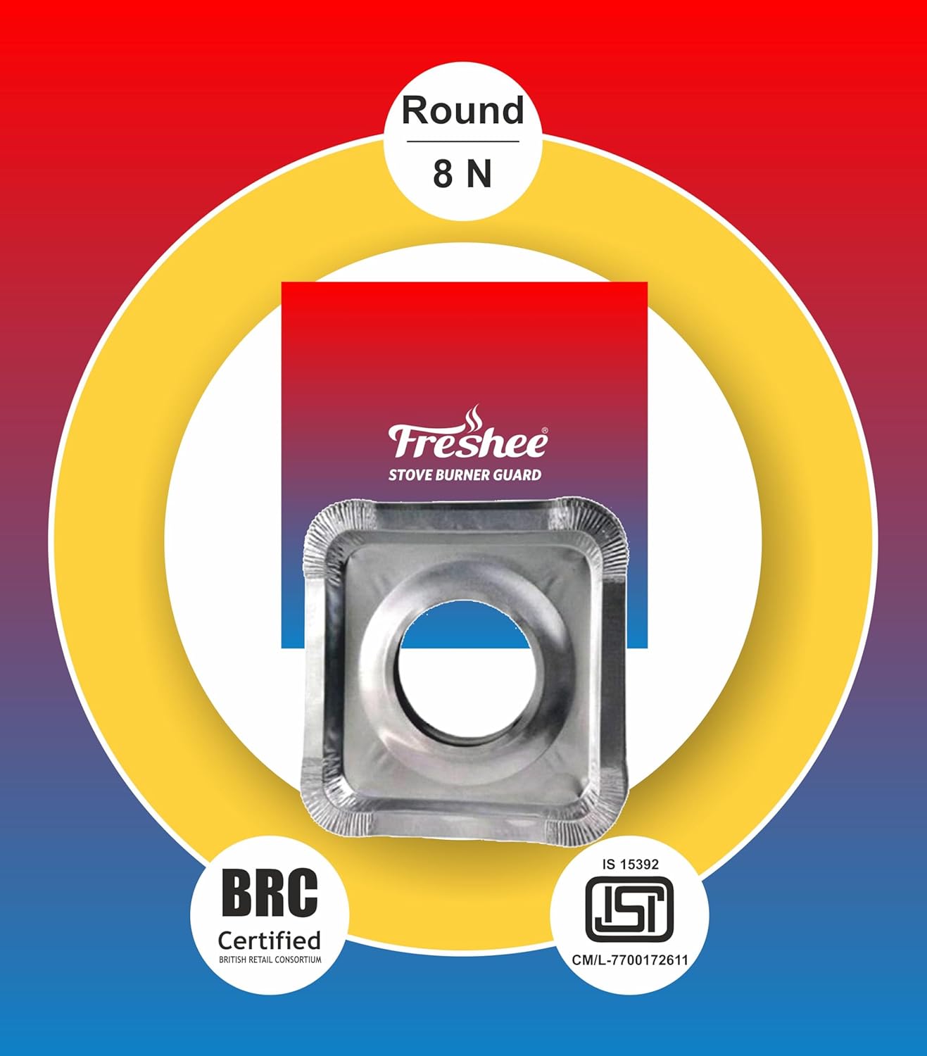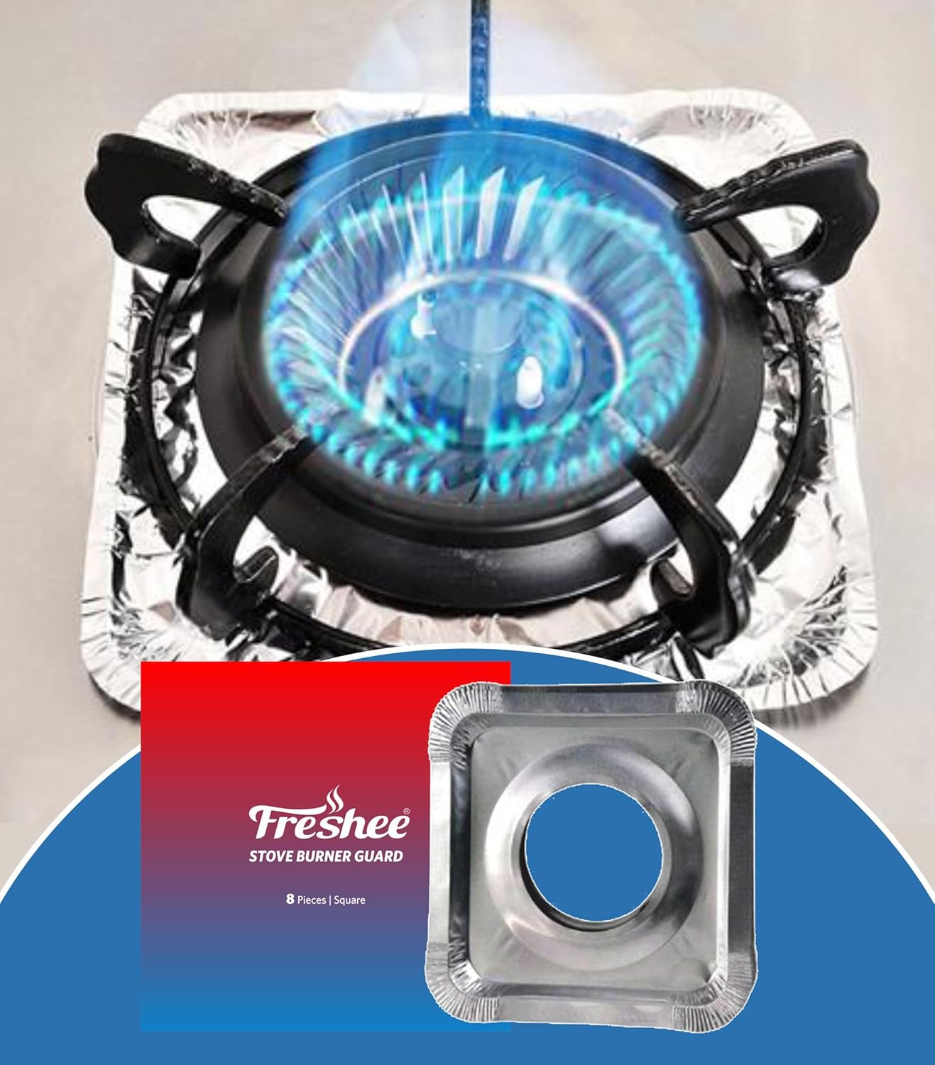 Freshee Stove Liner Cover Cleaners Disposable Aluminium Burner Guard | Gas Stove Burner Protector | Non-Stick Square Foil Liner for Oil, Spill & Grease Control | Easy to Use & Cleanup | Pack of 16