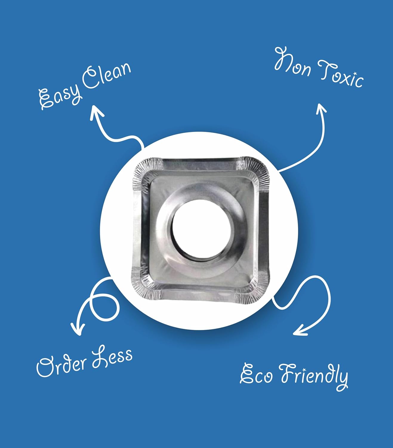 - PRODUCT DETAILS – Pack of 16 premium disposable aluminium stove liner covers designed to fit most gas burners; heat-resistant, pre-cut square foil sheets crafted for clean cooking, effective oil control, and quick mess prevention.