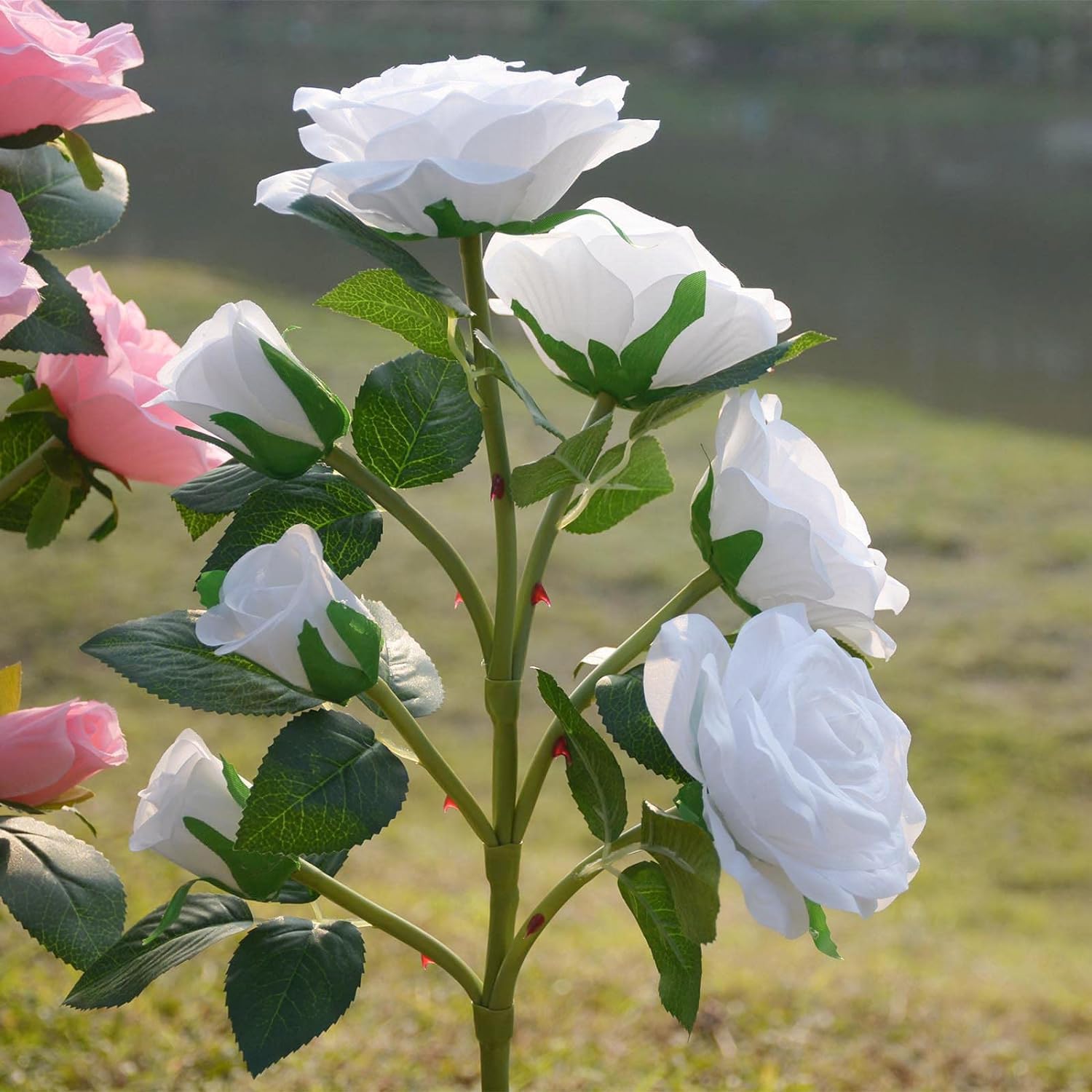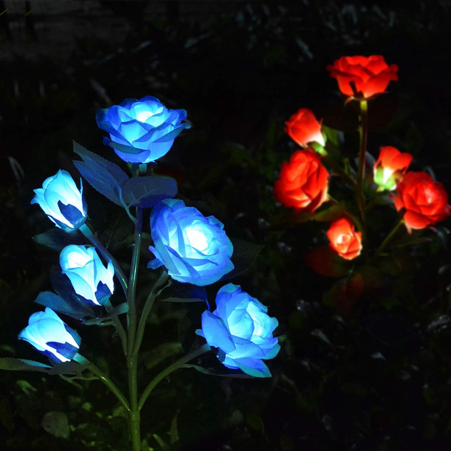 Elegant Solar Rose Flower Light: Brighten your garden with the beautiful solar rose flower light featuring 5 realistic flower heads and soft color-changing LEDs for stunning outdoor decoration.