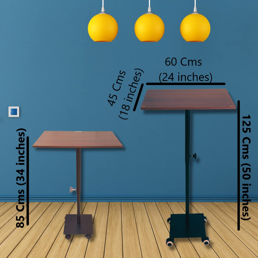 Height Adjustable Standing Table | 34″ to 50″ Height | Mobile Laptop Desk with Wheels | Ergonomic Workstation for Office, Home & Presentations | 24″x18″ Wooden Top