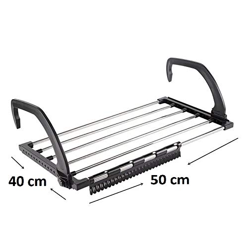 Package Included: 1 x Windwsill Clothes drying rack.Material: ABS + Stainless Steel Tubes. Size : 50cm ( L ) x 40cm ( W ) x 21cm ( H ).