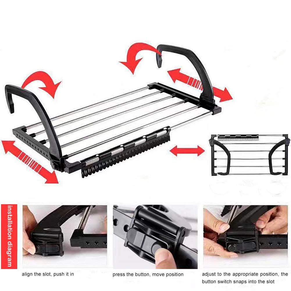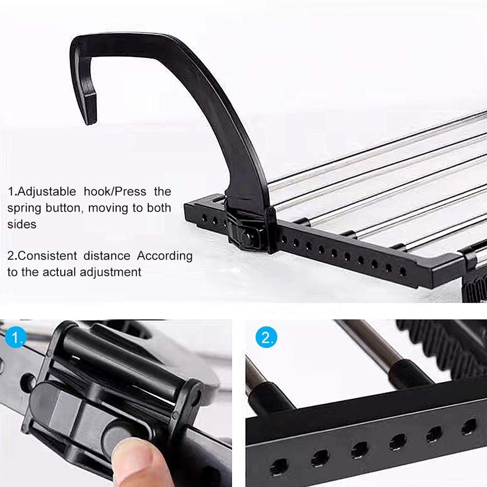 This folding extendable drying rack can dry clothes, shoes, pillows, ties, etc. Suitable for a wide range of applications such as windows, radiators, balconies, floor to ceiling windows, guardrails, safety windows, etc.
