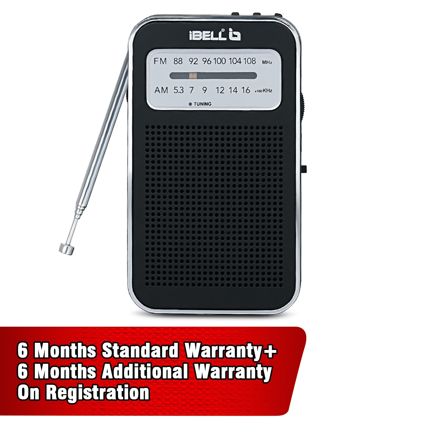 iBELL FM720BT Portable Pocket FM Radio with Bluetooth Speaker, USB/SD MP3 Player, Rechargeable with Type C Port, 2 Band (Black)