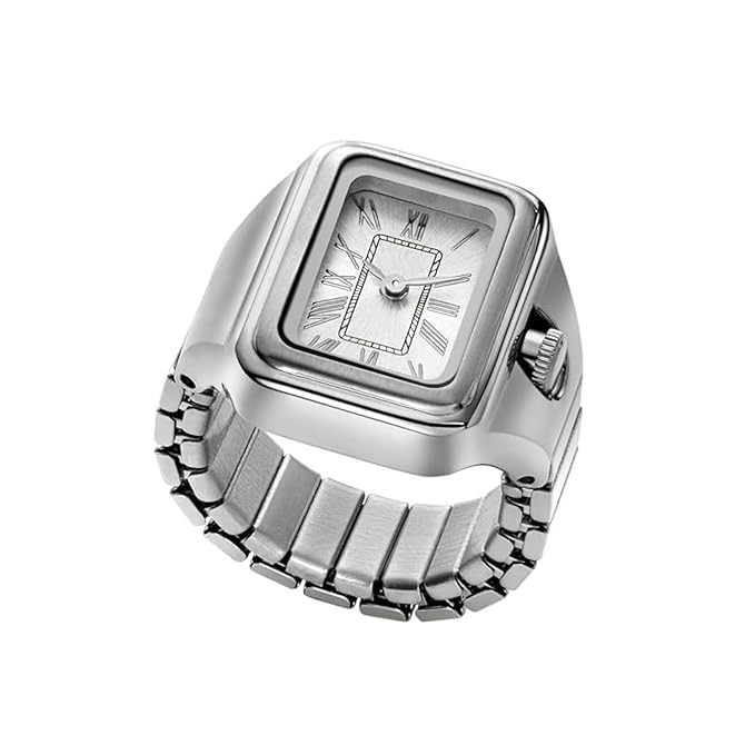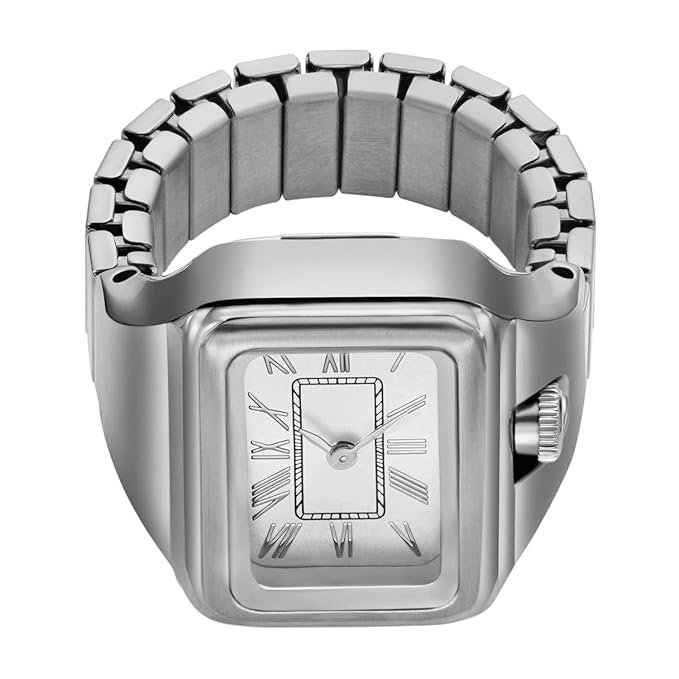 • Silver, stainless steel bracelet Finger ring watch for ladies
