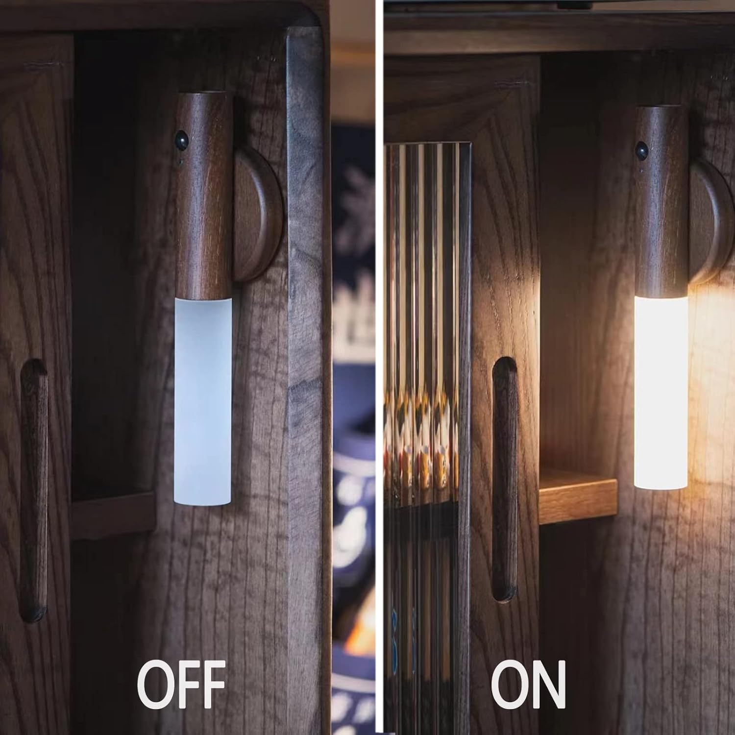 Motion Sensor Wall Lights Wood Battery Operated Sconce Light Indoor Magnetic USB Rechargeable Wireless Wall Lamp for Bedroom Hallway, Warm White 3000K
