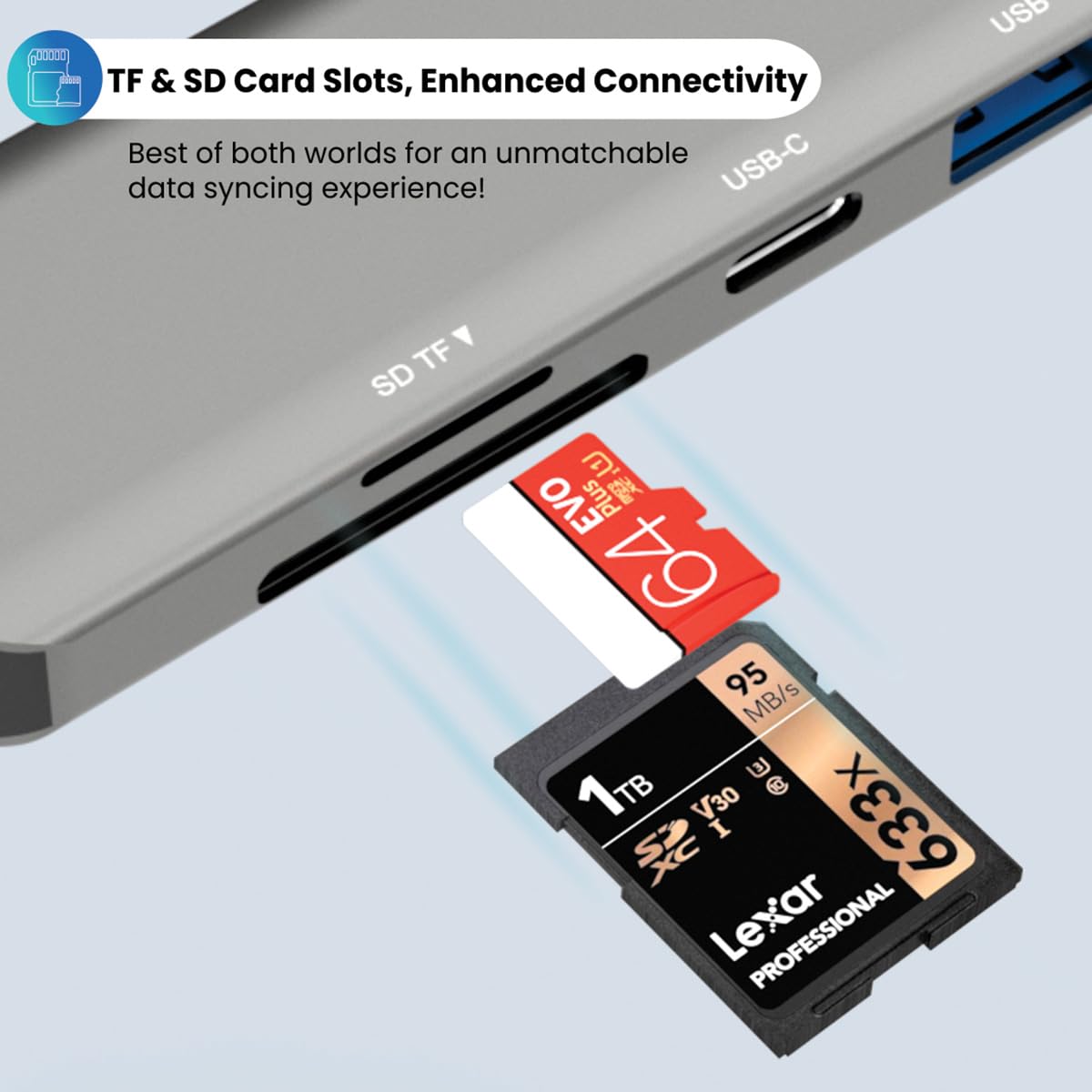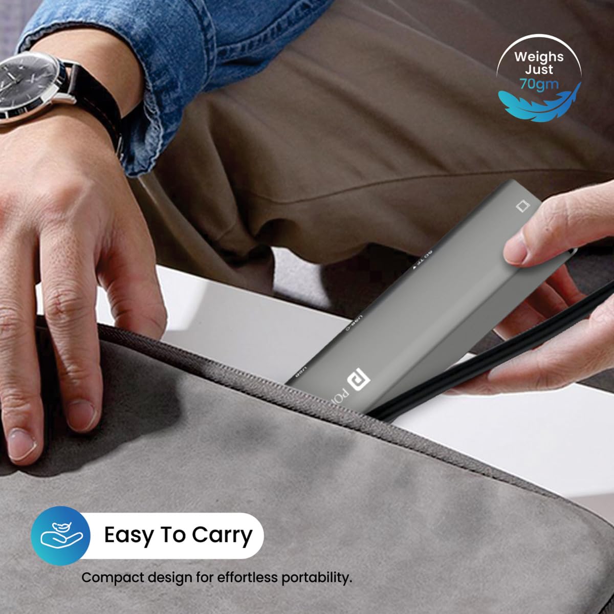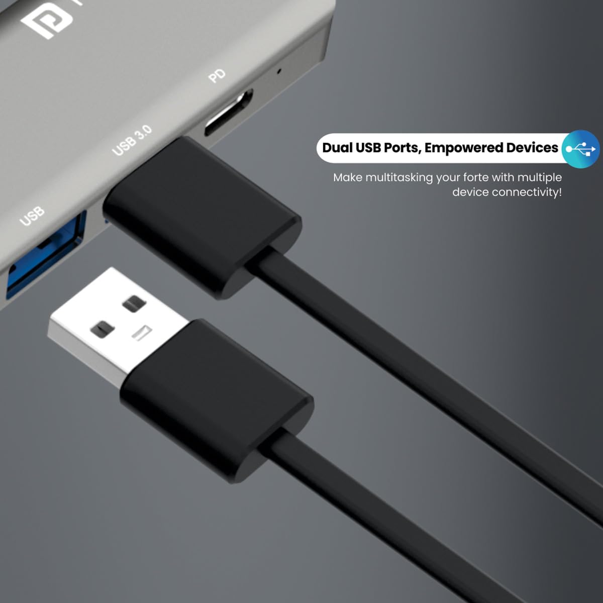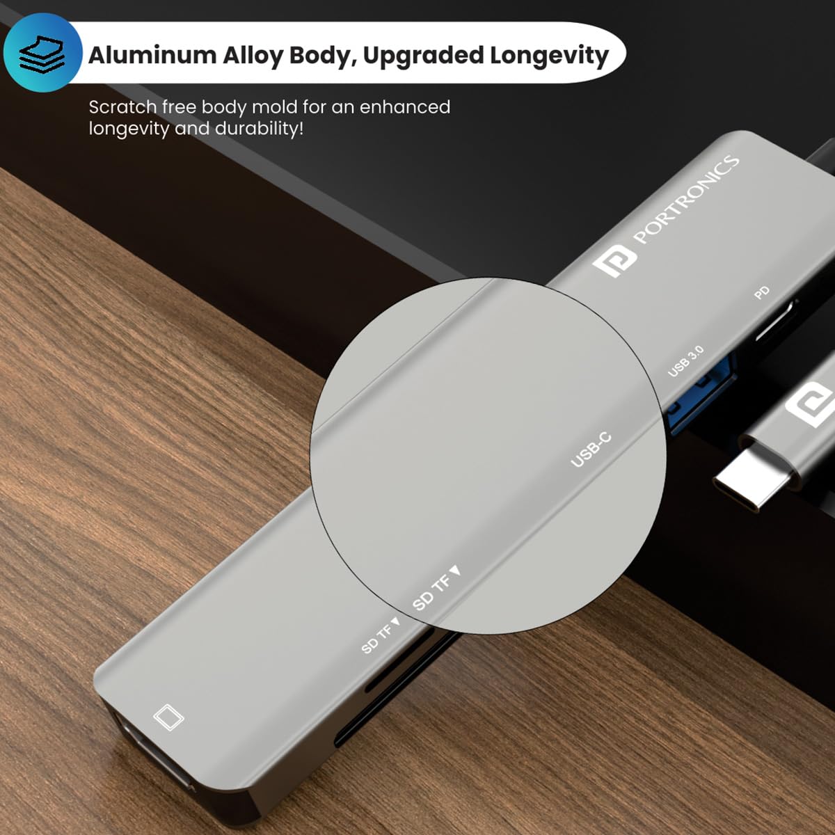 Portronics Mport 52 USB C Hub Dock (7-in-1), Multiport Adapter with 4K HDMI, 60 W PD Charging, USB 3.0/2.0 & USB Type-C Data Ports at up to 10 Gbps, microSD & SD Card Reader for Laptops(Grey)