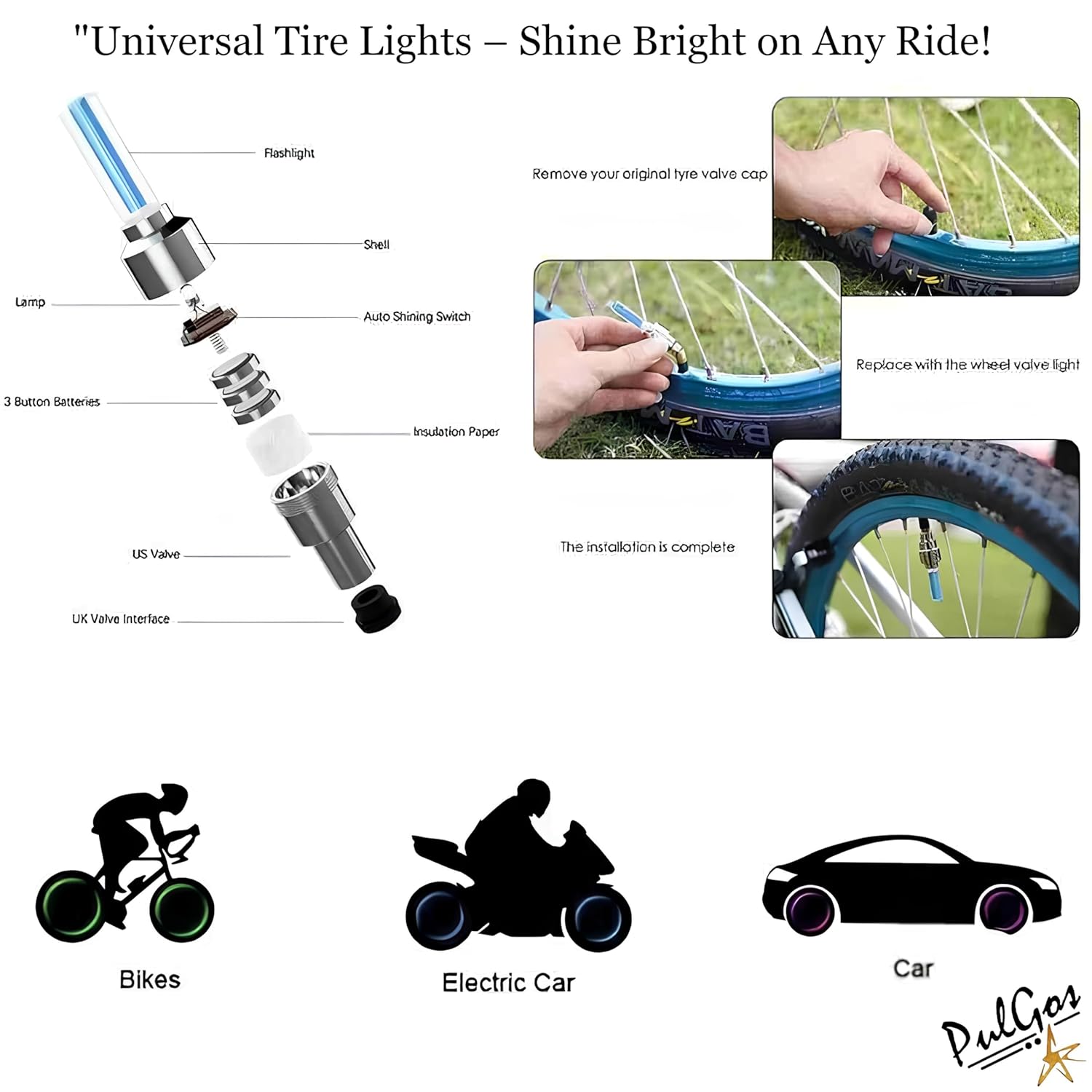 PulGos Bicycle Tyre Led Light Rim Valve Cap Flashing with Motion Sensor