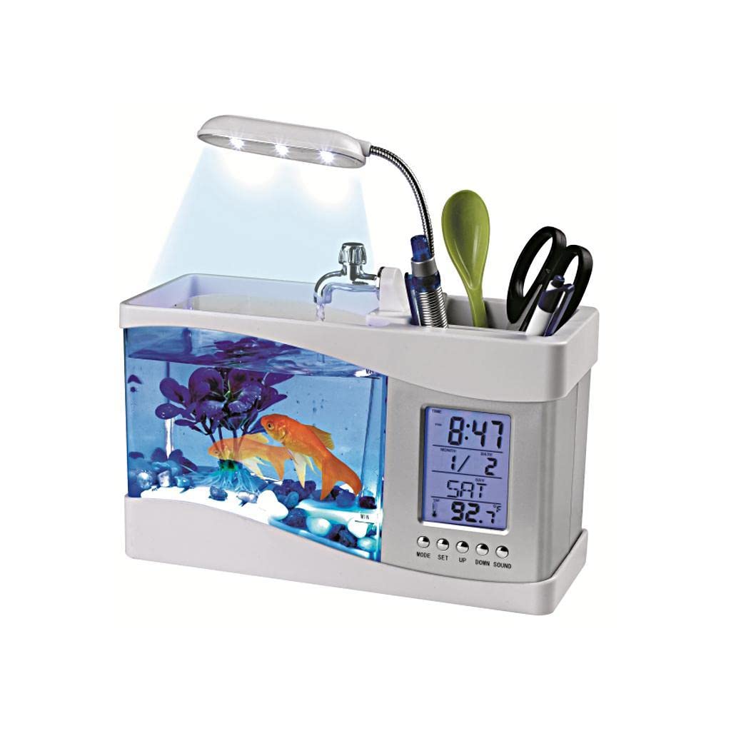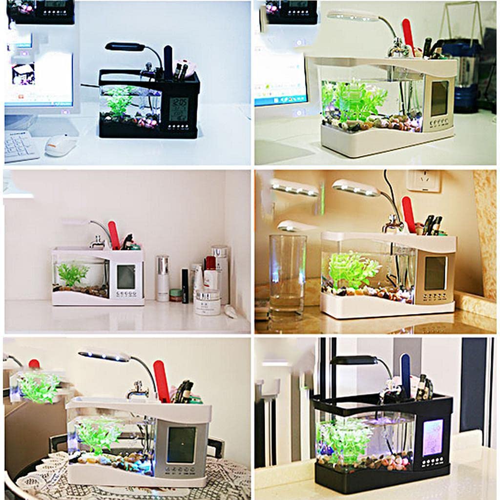 SECRET DESIRE Pets Products Mini USB Desktop Aquarium LCD Display Fish Tank Clock LED Lamp Light White|Aquariums Fish Tanks|Aquarium Kits setups|Tank Accessories