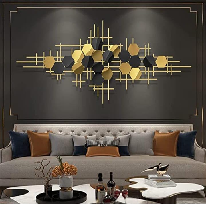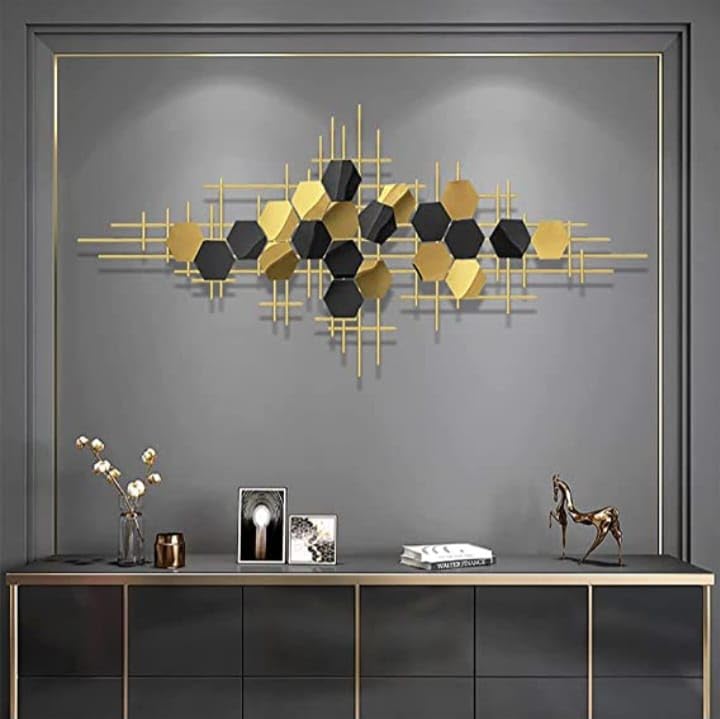 - This is beautiful 3D Creative Hexagon & Lines Metal Wall Decor Geometric Decorative Wall Art Hanging which provide a unique and vintage look of your home, office and room.