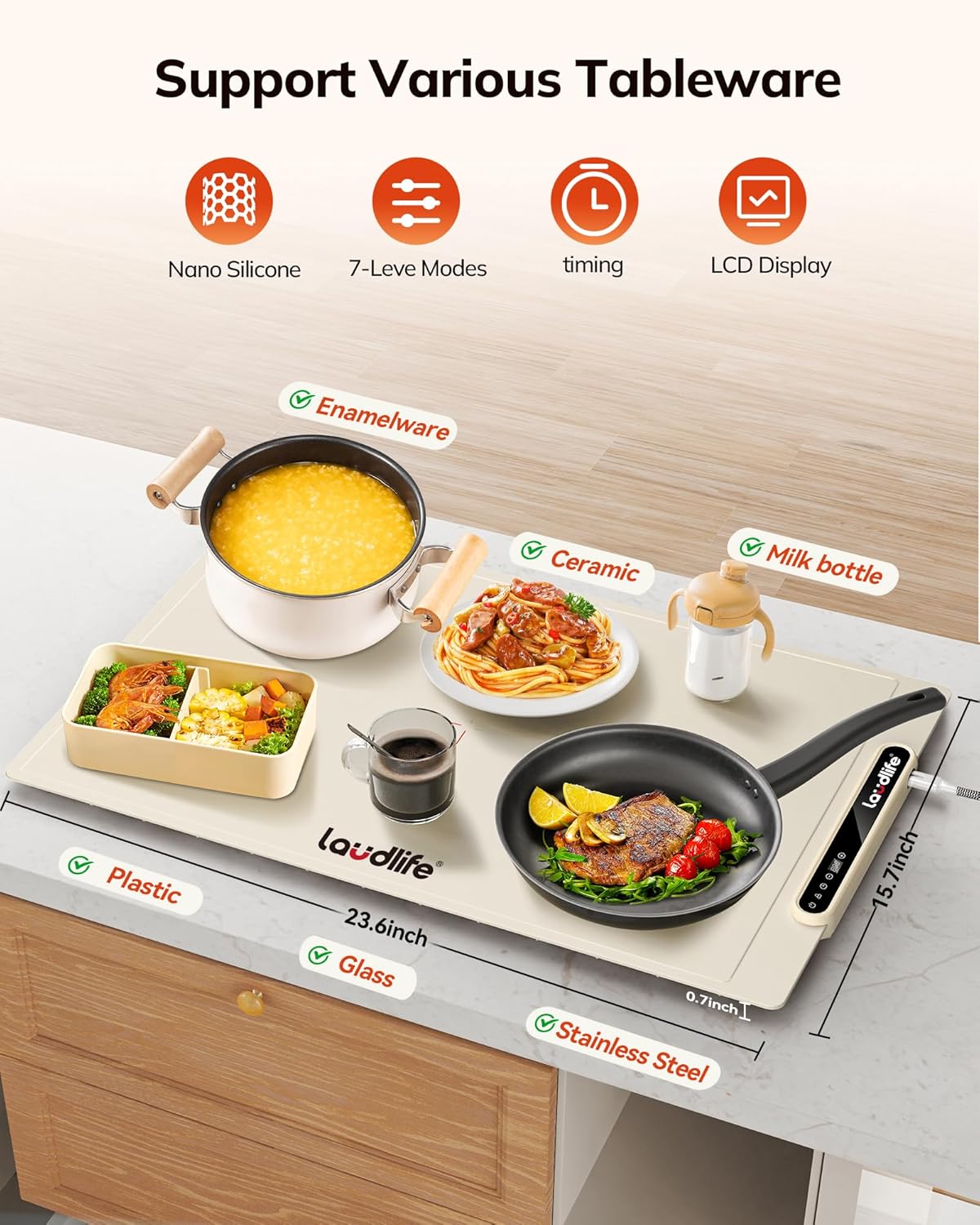 Food Warming Mat 24×16 Inches, Electric Warming Tray with 7 Temps