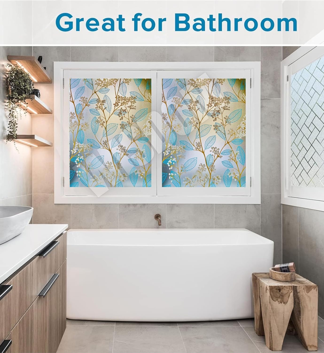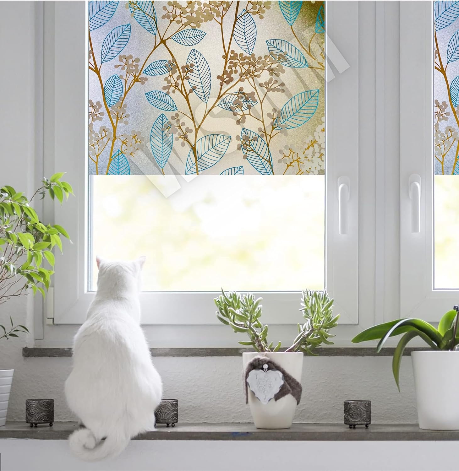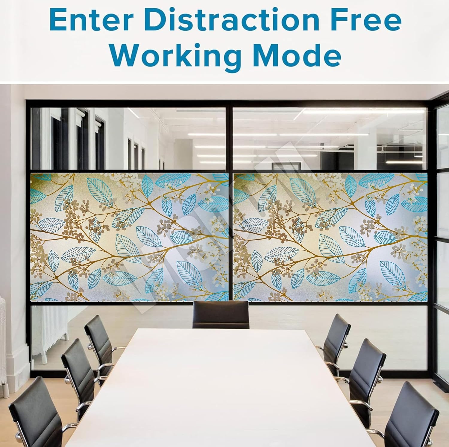 WISDOM Blue Leaf 16×48 Decorative Frosted Window Film for Home/Kitchen Office Film